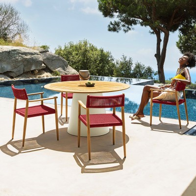 Modern Outdoor All Weather Dining Sets Teak Dining Table With Chairs Woven Rope Patio Dining Sets