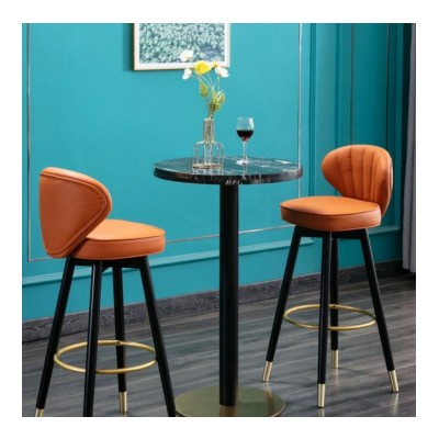 Light Luxury Solid Wood Swivel bar Stool American Genuine Leather Backrest High Stool Nordic Net Red Barstool